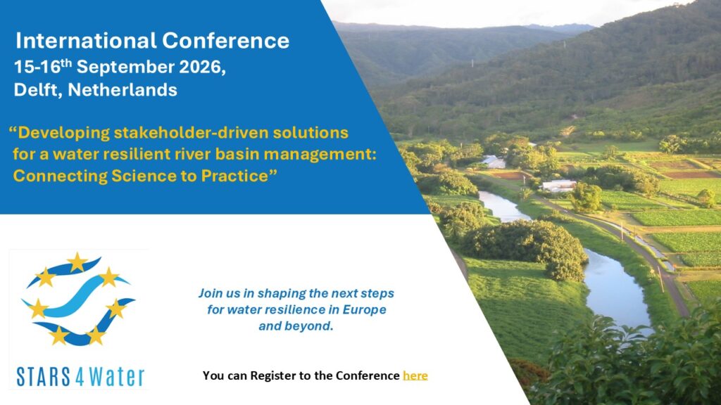 This Conference, organised by the STARS4Water project will bring together river basin authorities, policy makers, scientific institutions, and European actors to reflect on advancing climate-resilient water management across Europe.